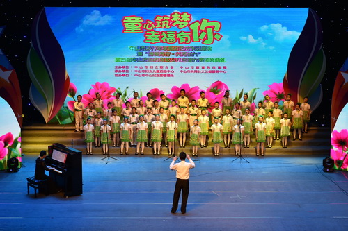 “朋友仔呀快滴嚟……起高楼嚟添砖瓦……神舟飞船震天下……红旗飘飘我爱它……一齐Happy 顶呱呱”纯净、清脆的歌声在中山这片热土上冉冉升起。这是孩子们欢乐的歌声、这是孩子们幸福的节日。