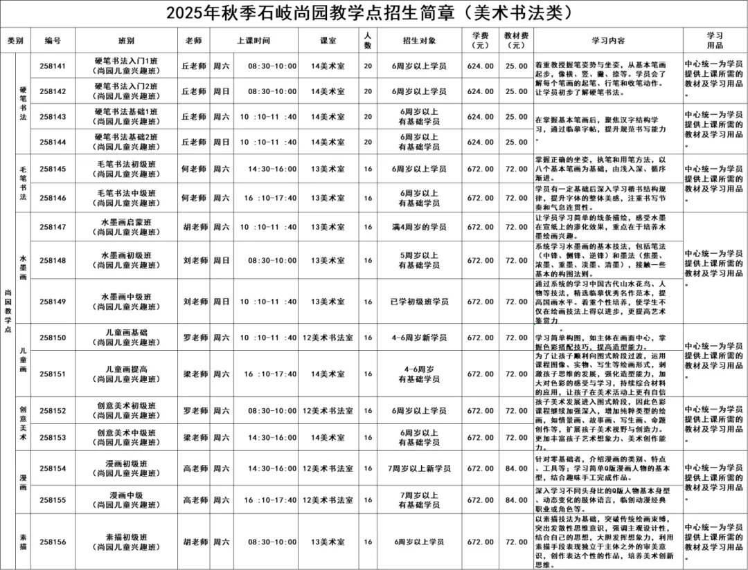 精彩延续,9月艺术之旅即将启程!我们继续为孩子们打造充满乐趣与启发的艺术天地。专业的师资、系统的课程,引导孩子感受美、创造美、表达美。无论是对绘画充满好奇,还是想练就一手好字,这里都是梦想启航的港湾。