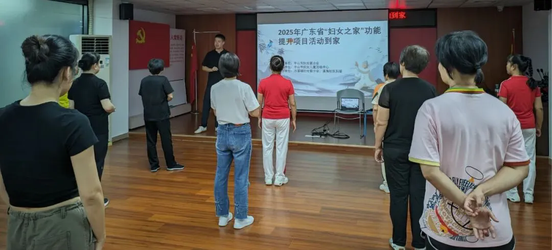 由中山市妇女联合会主办、中山市妇女儿童活动中心承办的——2025年度广东省“妇女之家”功能提升项目活动到家——八段锦专场活动于9月11日在沙溪镇溪角社区党群服务中心开展,吸引了20多名社区妇女参与,用舒缓的养生功法开启健康生活新方式。