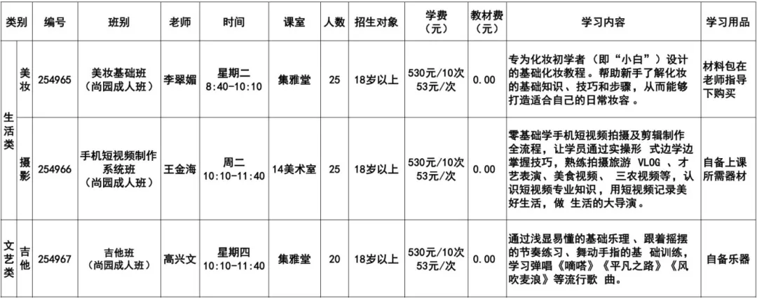 尚园教学点为您带来“生活类、文艺类”课程