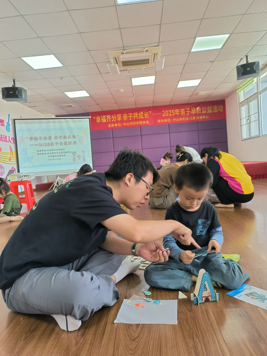 讲座还设置了手工拼装《摩天轮》的环节,家长们耐心地指导和协助孩子们一起完成手工DIY作品,亲子之间配合默契,共同探索制作摩天轮的乐趣。