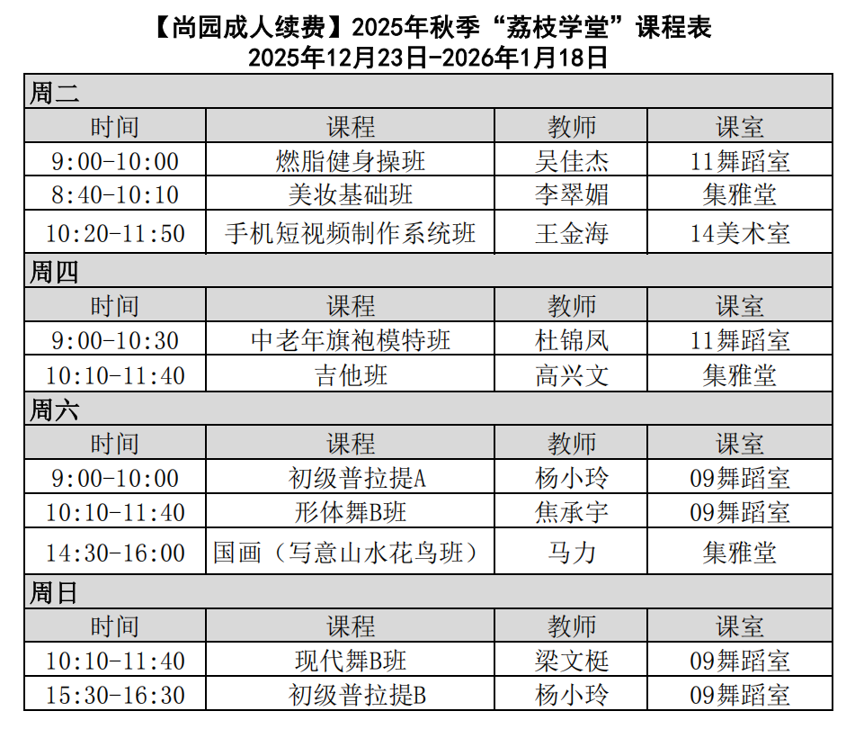 (在原秋季班基础上,新增3次课程,上课时间保持不变)