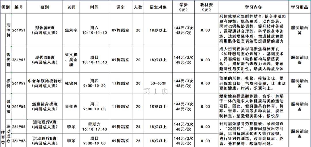 课程表及课程详情
