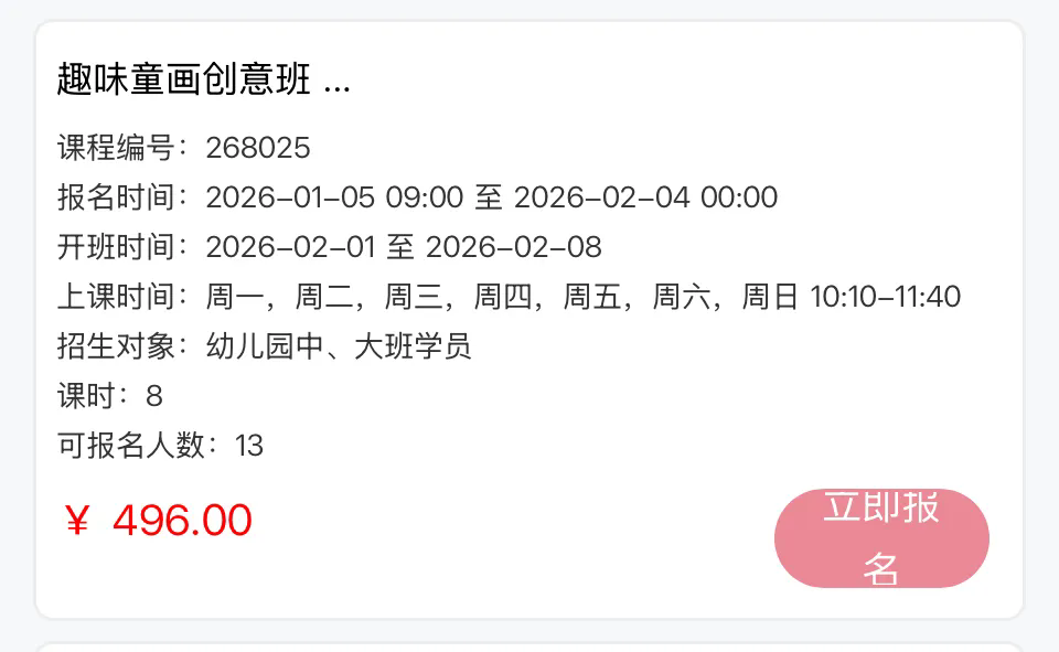 搜索课程名称或课程编号报名