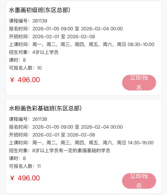 搜索课程名称或课程编号报名