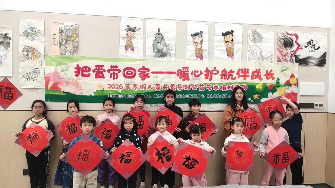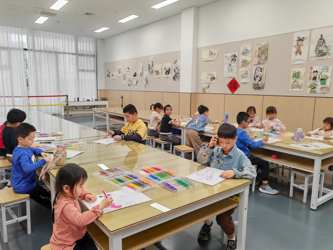 “老师,我这个‘福’字写得怎么样?”在毛笔书法课室里,孩子们看着自己刚完成的“福”字和春联,脸上洋溢着自豪的笑容。而隔壁的公益创意画课堂上,一幅幅稚嫩却真挚的作品,承载着孩子们对新年的美好祝愿。